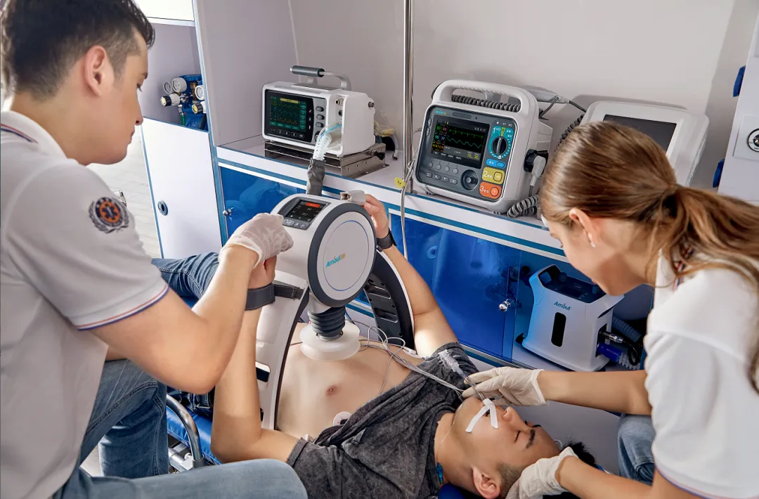 由安保医疗研发的CPR-通气智能联动的技术创新,在按压暂停期间,心肺复苏机触发呼吸机,减少了无血流时间,提高了呼气末二氧化碳(EtCO2)水平。