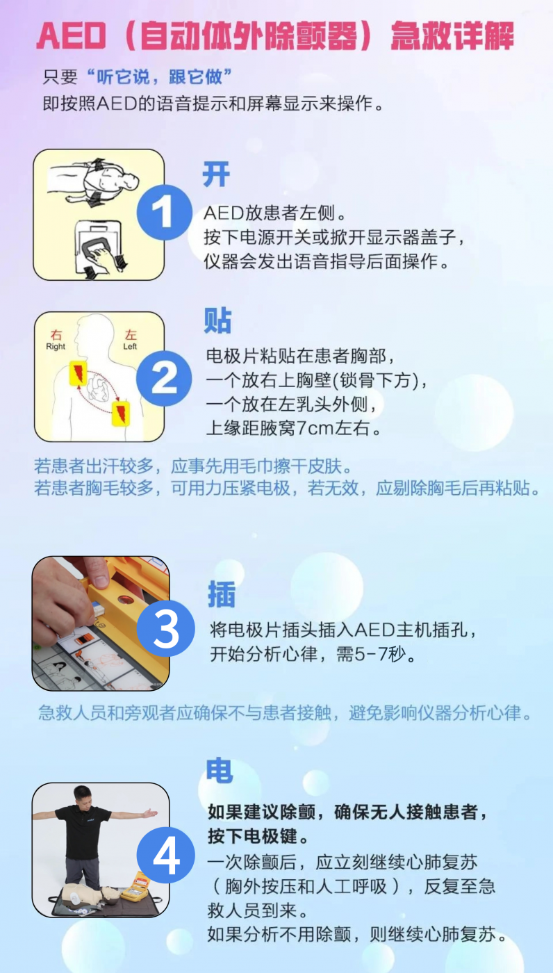 掌握自动体外除颤器(AED)的规范操作流程,是每位公民应尽的责任。在心脏骤停的紧急时刻,每一个环节都可能关乎生死。期望更多的人能熟练掌握使用AED的正确方法,为挽救生命贡献自己的力量。